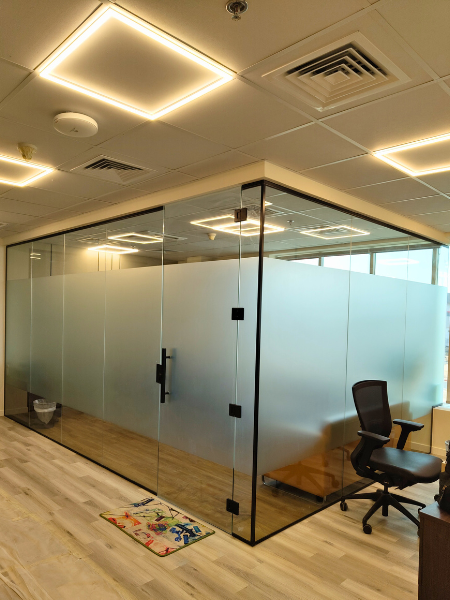 Our custom glass partitions combine transparency with purpose, creating collaborative yet private office zones that enhance both aesthetics and functionality.Premium Quality & Craftsmanship